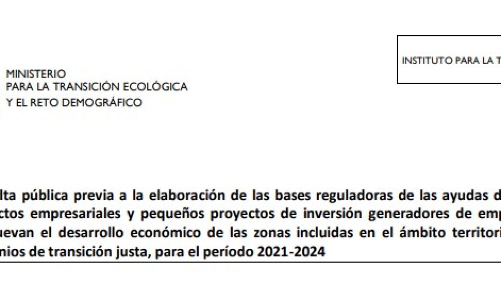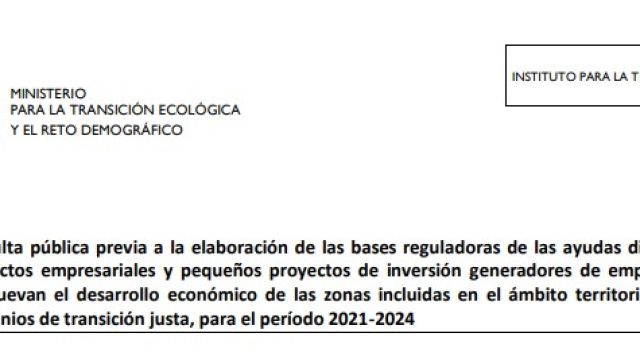 Las respuestas a esta consulta pública podrán remitirse hasta el 19 de febrero de 2021 al correo electrónico consultapublica@transicionjusta.gob.es