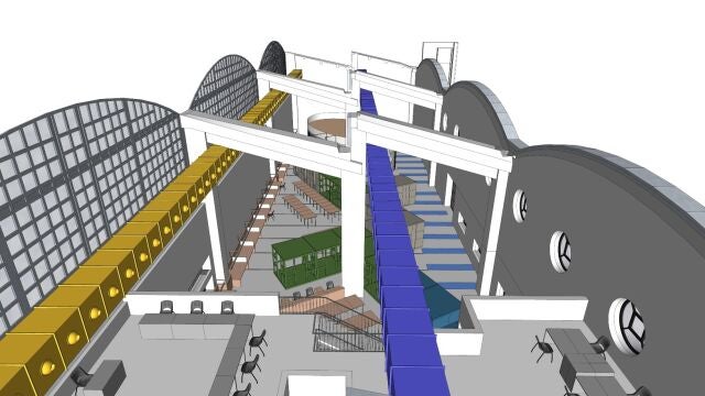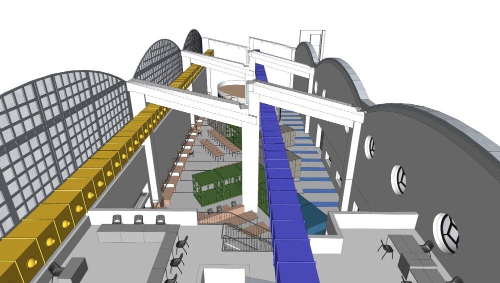 Las obras incluyen la reparación de la cubierta y el sótano del edificio. Se aprovechará la superficie preexistente en un lateral y la gran nave central se subdividirá mediante estructuras modulares en varias zonas diferenciadas y puestos de trabajo. La distribución se realizará con mobiliario ligero y fácilmente desmontable para flexibilizar los usos.