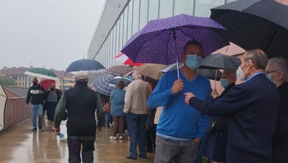 La situación ha generado muchas protestas. Porque decenas de personas de edad avanzada han tenido que esperar largo tiempo de pie. La situación se ha complicado con una importante tromba de agua que ha caído sobre la ciudad a media mañana. Acceder al interior del pabellón ha sido complicado para muchos.