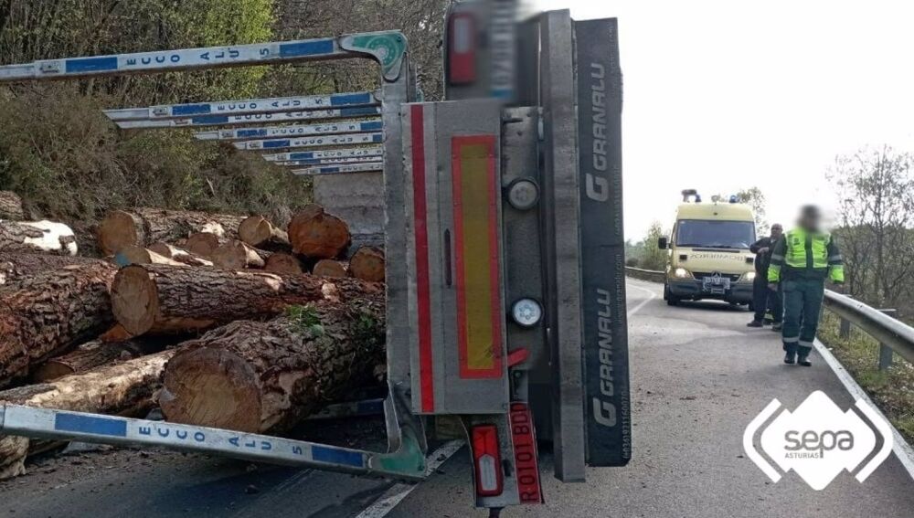 Según informa en Twitter el Servicio de Emergencias del Principado de Asturias (SEPA) la sala del 112 recibió el aviso a las 17.12 horas. En la llamada se indicó que un camión, que transportaba madera, había volcado y estaba ardiendo, con su conductor atrapado.