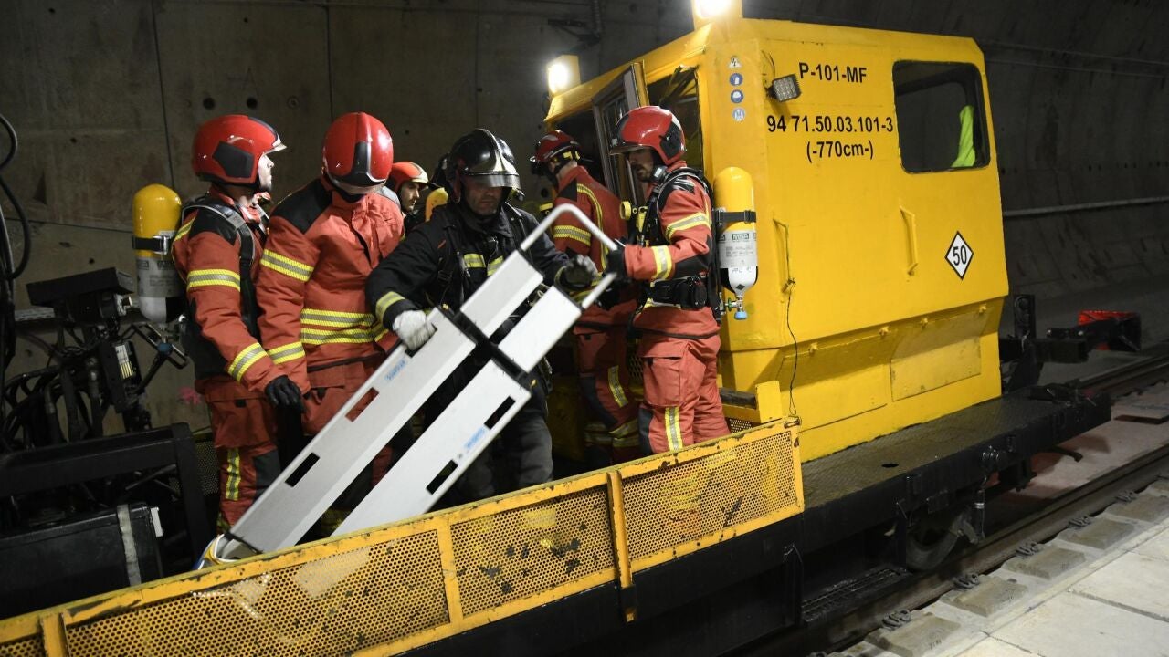 En el ejercicio de emergencia, un tren de mercancías se ha quedado inmóvil por un conato de incendio dentro del túnel. Los maquinistas han intentado sofocarlo y uno de ellos ha resultado herido con heridas de diversa consideración.