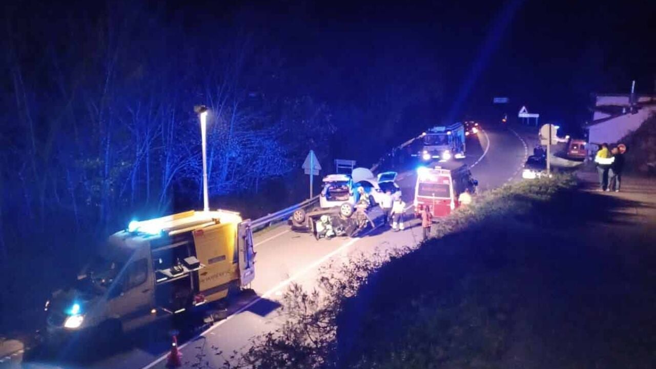 El Centro de Coordinación de Emergencias recibió el aviso a las 23.31 horas de ayer domingo. En la llamada se indicó que había un turismo volcado. De inmediato se movilizó a cuatro efectivos de Bomberos del Servicio de Emergencias del Principado de Asturias (SEPA), con base en el parque de Tebongo, que se trasladaron con el vehículo primera salida y el furgón multisocorro.