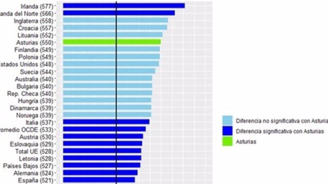 El estudio PIRLS utiliza una escala con 500 puntos de media para determinar el resultado de la evaluación. Asturias ha obtenido una puntuación de 550 puntos frente a los 521 puntos de la media de España, los 528 de la Unión Europea y los 533 de Promedio OCDE.