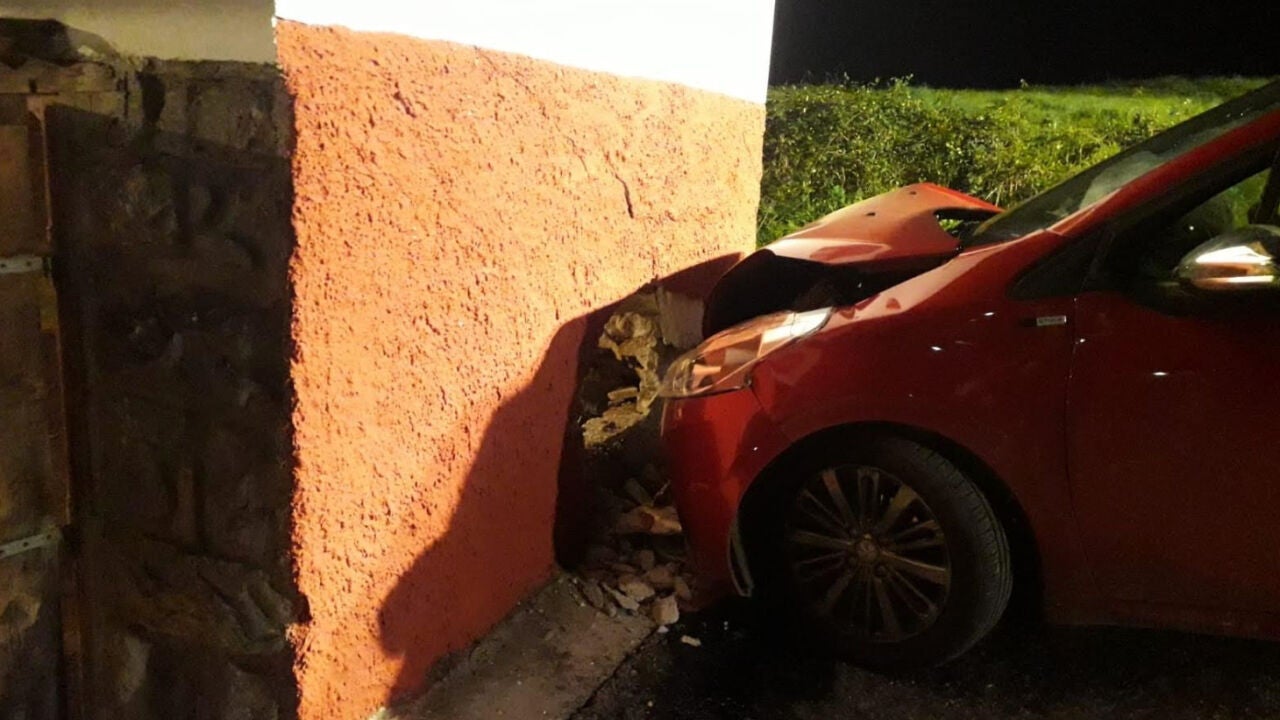 El Centro Coordinación de Emergencias del 112 Asturias recibió el aviso a las 22.49 de ayer domingo. En la llamada señalaban que un turismo se había empotrado contra el muro de una vivienda y su conductor estaba en el interior.