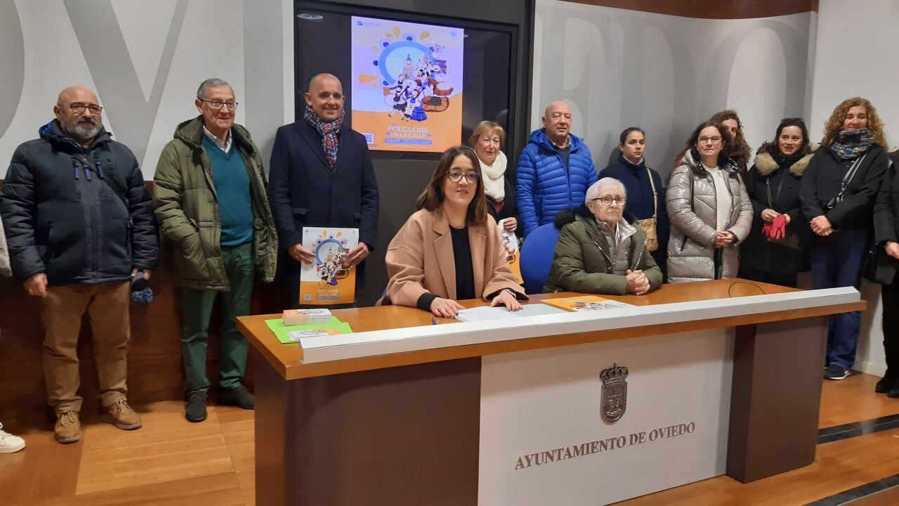 En Oviedo vuelve el programa 'Folclore en la calle' en la que grupos de baile y bandas de gaitas amenizarán desde este fin de semana las mañanas de los sábados y domingos hasta finales de octubre. Los primeros serán este 4 y 5 de marzo con las actuaciones de la Agrupación folclórica "Xuno" de San Claudio y el grupo de baile del Centro Asturiano. En verano también recorrerán las calles del Oviedo Antiguo los sábados por la tarde. Son 200.000 euros que remuneran ambos tipos de colectivos de igual manera. La concejala de festejos Covadonga Díaz destaca cómo estas actuaciones son muy agradecidas por carballones y visitantes.