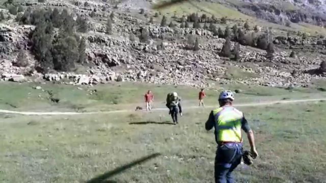 Efectivos de Grupo de Rescate de Bomberos de Asturias, por tierra, en colaboración con el Greim de la Guardia Civil han rescatado a dos personas que se desorientaron este miércoles por la tarde cuando realizaban la ruta de los Lagos de Covadonga, en Cangas de Onís.