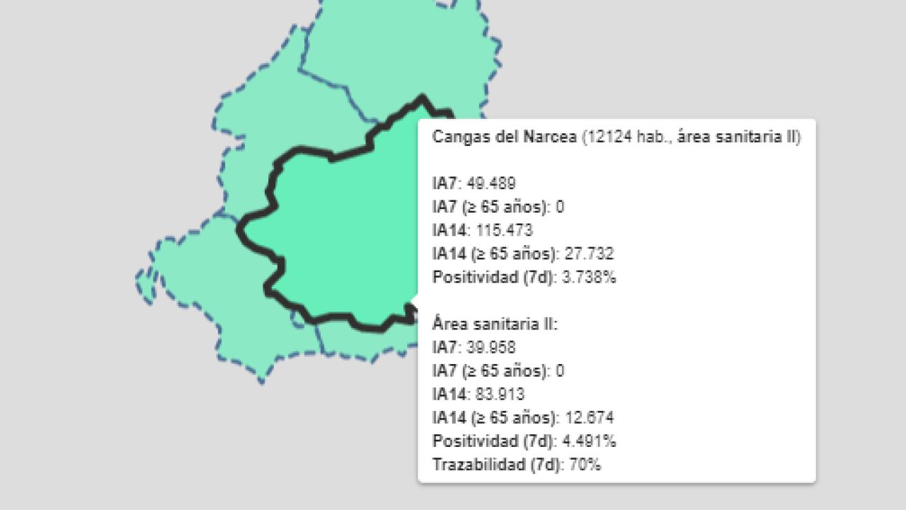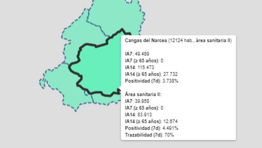 En lo que respecta al Área Sanitaria II, y a la espera de conocer a lo largo de hoy los datos del fin de semana, tenemos la confirmación de 14 casos activos en Cangas del Narcea, los últimos confirmados han sido 2 el miércoles 30 de junio. En Tineo son 6 los casos activos, siendo 1 el último anotado el jueves 1 de julio. Ese mismo día se anotaba 1 caso en Allande, el primero desde el 26 de abril. En todos los concejos se trata de personas menores de 65 años.