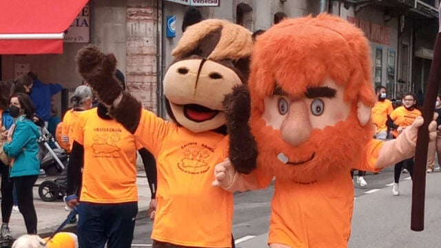 En Infiesto, las mascotas del concejo no quisieron faltar a la cita. Lotu y Tulo vistieron su camiseta naranja para mostrar su buen corazón.