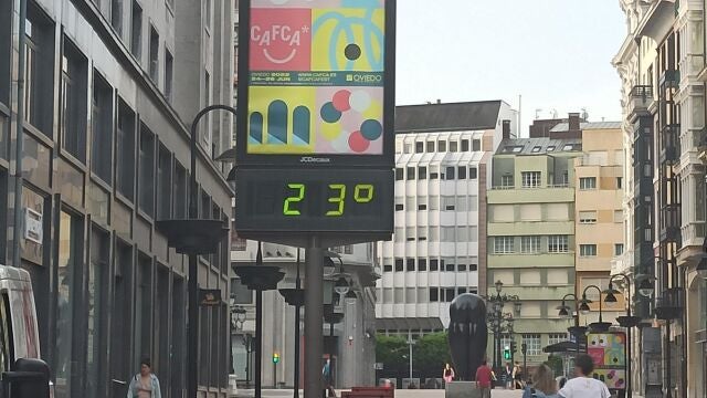 Sobre las 8 de la mañana, los indicadores del tiempo en el centro de Oviedo ya marcaban 23 grados.