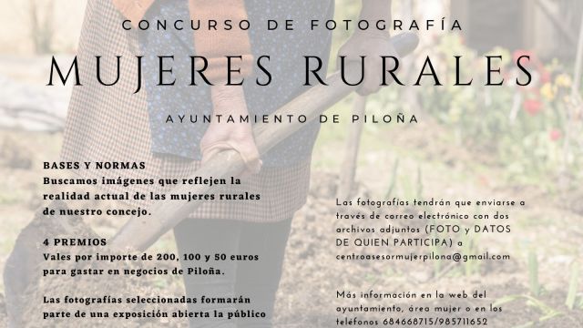 Desde el Ayuntamiento de Piloña, en colaboración con L´Agostiellu, se ha convocado un concurso fotográfico con el objetivo de elaborar una exposición pública que recoja las mejores imágenes sobre mujeres rurales.