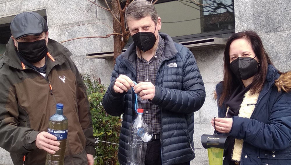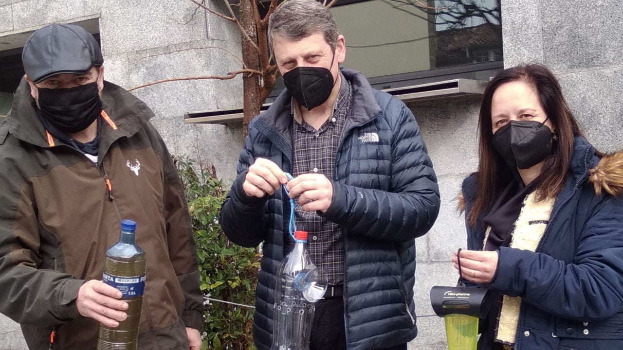 Primer día de reparto de trampas y atrayente contra la avispa asiática en Tineo.