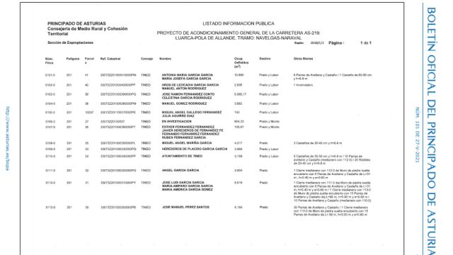 El Principado sigue adelante y declara la urgente ocupación de 13 fincas para realizar las obras de la carretera