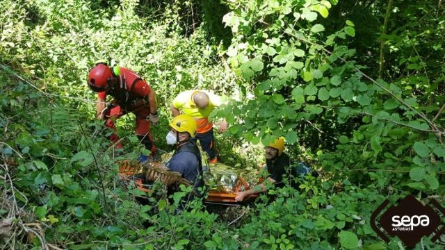 El afectado, que presentaba politraumatismos, ha sido evacuado por el Grupo de Rescate al Hospital Universitario Central de Asturias