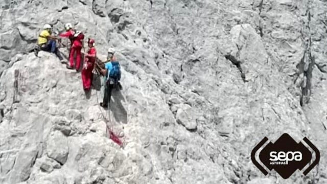 El Grupo de Rescate de Bomberos de Asturias, a bordo del helicóptero medicalizado del Servicio de Emergencias del Principado de Asturias (SEPA), ha rescatado a un escalador que resultó herido en la vía Cepeda, en la cara Este del Urriellu.