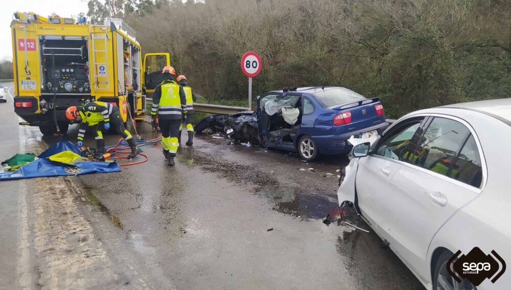 El Centro de Coordinación de Emergencias recibió el aviso a las 14:04 horas. En la llamada se informó de la colisión de dos turismos y se indicó que había una persona atrapada en uno de ellos. De inmediato se movilizó a seis efectivos de Bomberos del Servicio de Emergencias del Principado de Asturias (SEPA), con base en Avilés, que se trasladaron con el furgón multisocorro y el vehículo primera salida.