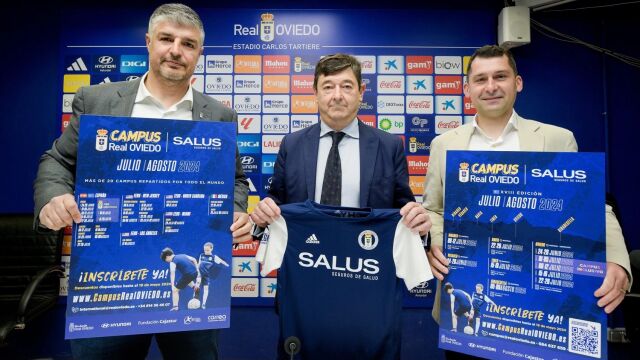 El Campus Real Oviedo, que externa patrocinado en la firma Salus, está abierto para todos los niños y niñas a partir de los 5 años. El programa no sólo se centra en mejorar las habilidades futbolísticas, sino también en inculcar valores esenciales como la amistad, la tolerancia y el juego limpio. César Martín, director de la Fundación Real Oviedo, junto a Pablo Valcárcel, director de la Escuela Real Oviedo, y Máximo López Pérez, gerente de Salus, destacaron durante la presentación la importancia de estos valores para el desarrollo personal de los participantes.