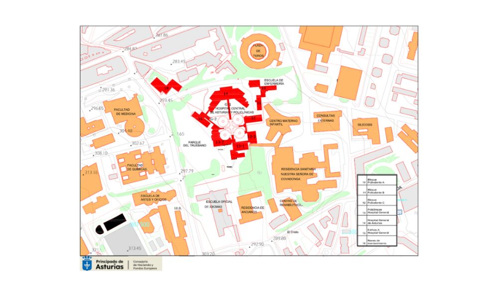 El Principado de Asturias publica este jueves la licitación del derribo de los edificios propiedad de la comunidad autónoma en el viejo hospital de El Cristo. Se trata del antiguo hospital general, almacén, taller y edificios anexos. Sólo quedaría en pie el inmueble de policlínicas, conocido como ‘los hongos’. El concurso sale con una dotación de 7.800.000 de euros de los que se descuenta el millón de euros que se recuperaría con la venta de material reciclable en una operación compleja desde el punto de vista ambiental dado que hay que retirar amianto.