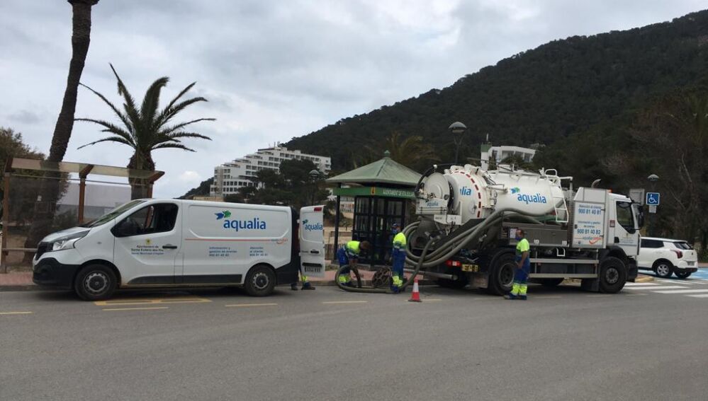 Aqualia limpia en Ibiza la red de aguas pluviales de Santa Eulària des Riu para evitar inundaciones