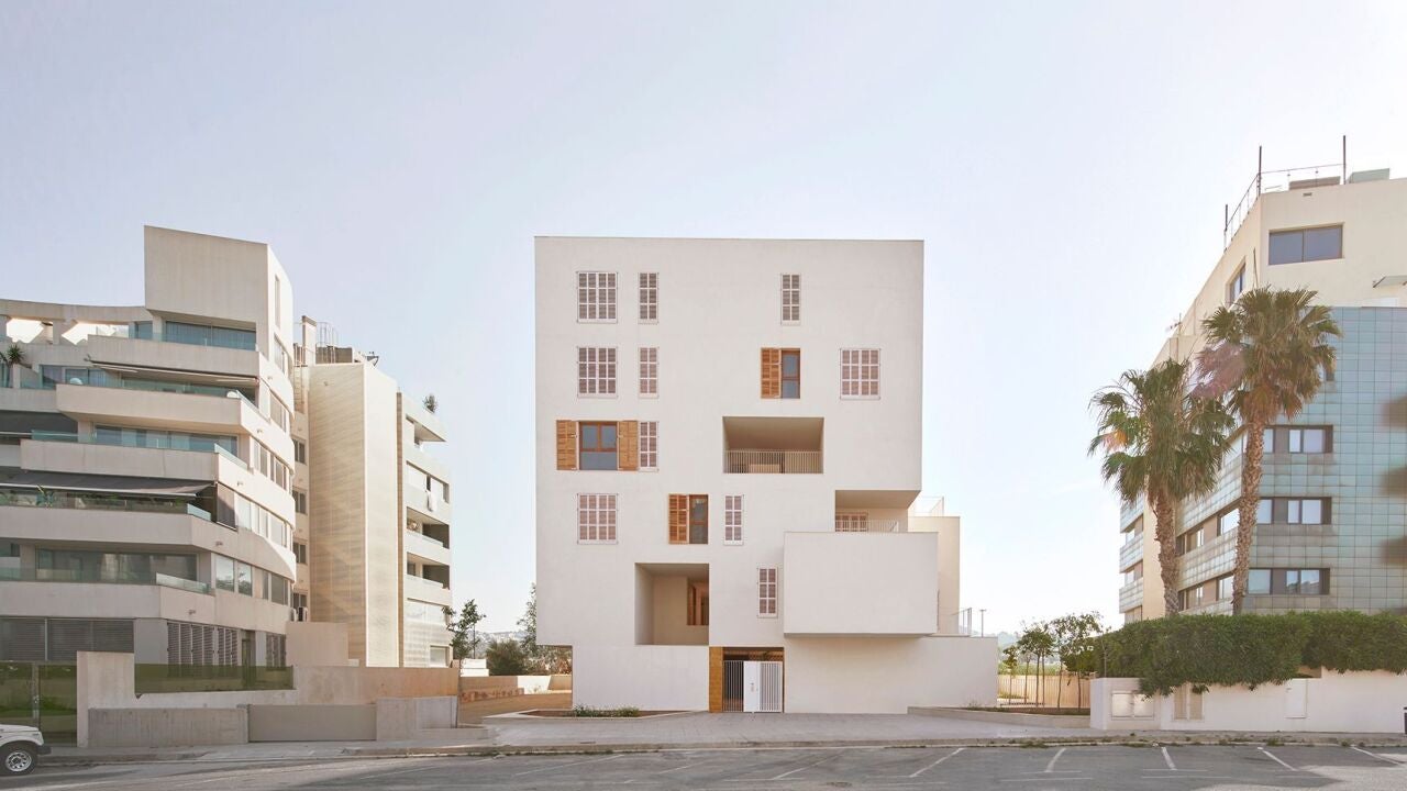 De hecho, es un conjunto de 19 viviendas apiladas y adosadas, con un espacio interior que conecta patios y porches, creando áreas comunitarias con buena iluminación y ventilación cruzada que además tiene un aparcamiento en la planta baja debido al nivel freático cercano y en el que se prioriza además la sostenibilidad con una calificación energética A, utilizando iluminación natural, energías renovables y tecnologías eficientes.