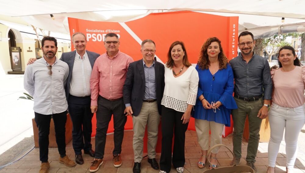 Durante el acto, la secretaria general del partido, presidenta del Govern y candidata a la reelección, Francina Armengol, estuvo acompañada de Pilar Costa, cabeza de lista en el Parlament, y Josep Martí Ribas Agustinet, candidato a la presidencia del Consell d'Eivissa.