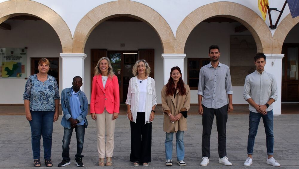 La alcaldesa de Santa Eulària des Riu, Carmen Ferrer; y la directora insular del Servei d’Ocupació de les Illes Balears, Dolores Roig; han participado esta mañana en el acto de incorporación de tres nuevos trabajadores –uno de ellos, por motivos personales, se incorporará en unos días- que se integrarán en la plantilla del Ayuntamiento gracias al programa del Govern ‘Joves Qualificats’.