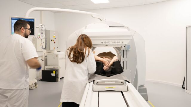 No en vano, esta técnica combina la gammagrafía convencional con la tomografía computarizada permitiendo observar no solo la estructura de los órganos y tejidos, sino también su funcionamiento a nivel metabólico, lo que posibilita detectar alteraciones antes de que aparezcan los síntomas, tal y como ha explicado la doctora Pilar María, especialista en Medicina Nuclear del Grupo Policlínica: "La gammagrafía nos muestra la actividad metabólica de los tejidos que queremos explorar, mientras que el TAC nos ayuda a localizar anatómica y estructuralmente ese metabolismo y en este caso el SPECT-CT aúna lo mejor de dos mundos y nos ofrece una información muy valiosa para el diagnóstico precoz".