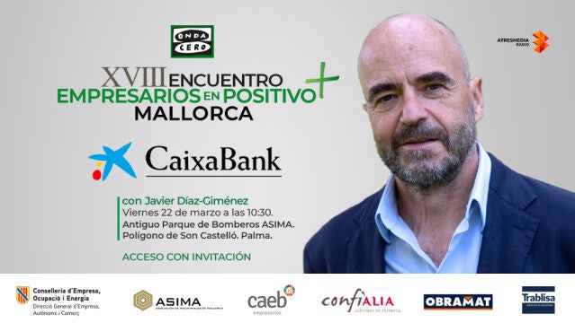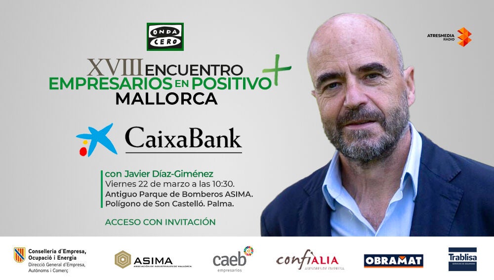 Vuelven a la isla de Mallorca los Encuentros de Empresarios en Positivo, el foro económico y empresarial de Onda Cero y CaixaBank. Tras el éxito de las anteriores ediciones de este destacado evento, dirigido a empresarios y emprendedores, Atresmedia Radio anuncia la celebración de un nuevo encuentro en la mañana del 22 de marzo en el Polígono de Son Castelló.