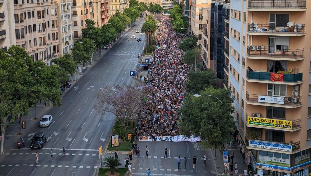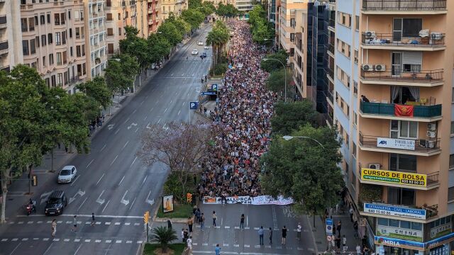 Miles de personas se manifestaron en Palma para reclamar el derecho a una vivienda digna. Los manifestantes piden medidas urgentes como la declaración de emergencia habitacional, la moratoria del alquiler turístico y la limitación de la compra de viviendas por parte de no residentes