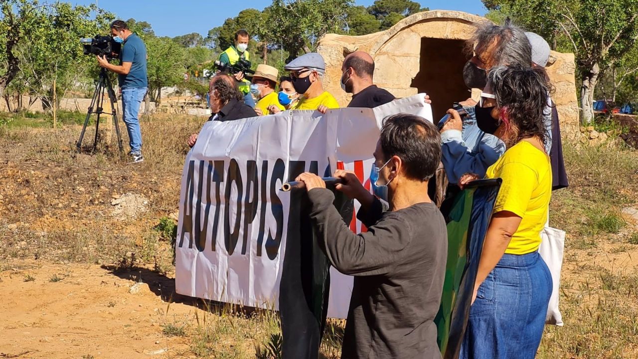 Activistas de la Plataforma Antiautopista protestan durante la inauguración de la vía Llucmajor-Campos