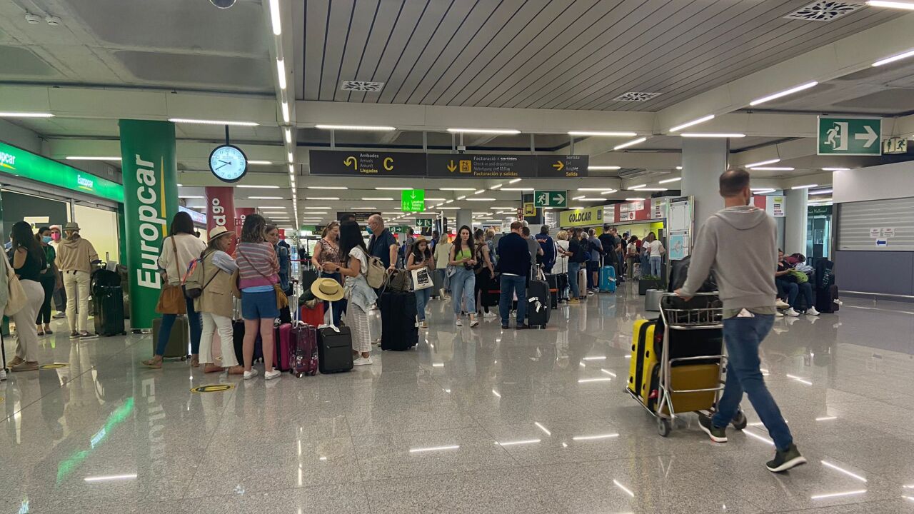 Pasajeros recién llegados al Aeropuerto de Son Sant Joan en Palma. | Maria Cortès
