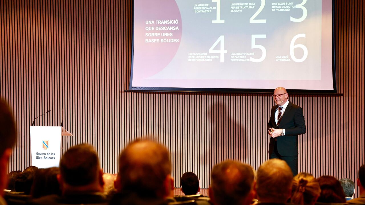 En su exposición, Riera ha insistido en varias ocasiones en que el proceso de transición de Baleares es "necesario y oportuno", aunque a veces "pueda ser doloroso", y ha hecho hincapié en que el documento presentado este jueves parte de "unas bases sólidas, una metodología rigurosa y una estructura capaz de transformar el conocimiento colectivo en algo práctico y manejable".
