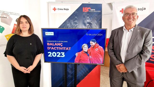 La coordinadora autonómica de Cruz Roja en Baleares, Ana Espinosa, y el presidente autonómico, Mateu Ballester, presentaron este miércoles el informe anual de la ONG de 2023