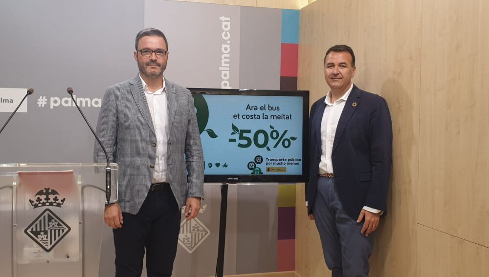 En rueda de prensa el alcalde de Palma, José Hila, y el regidor de Movilidad Sostenible, Francesc Dalmau, han detallado que, así, la tarjeta de 20 viajes pasará de 13 euros a 6,5 euros y la tarifa ilimitada bajará de los 37 euros a los 18,5 euros.