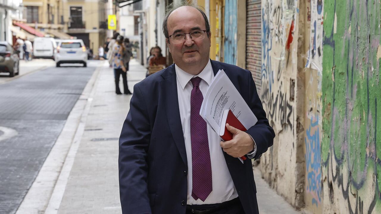 El ministro de Cultura, Miquel Iceta, a su llegada a la librería Ramón Llull. | Rober Solsona - Europa Press