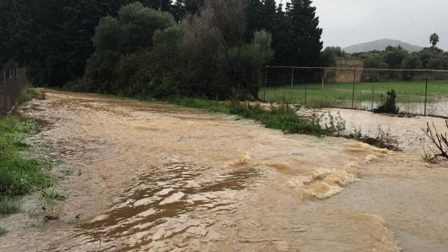 Cierre al tráfico de vehículos del camí vell d’Inca, a su paso por Campanet, por el desbordamiento del torrente de Cantabou | Ajuntament de Campanet