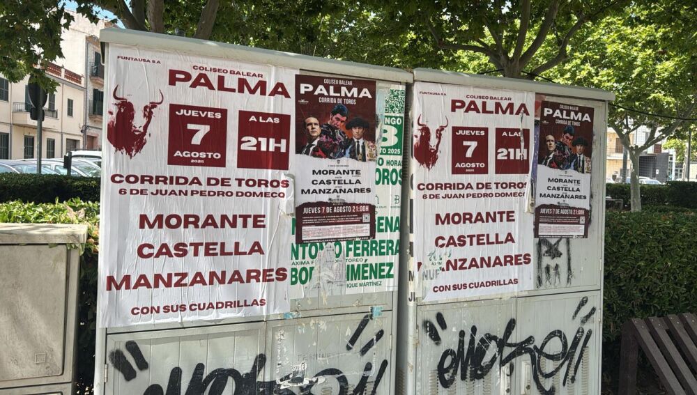 Imágenes captadas en diversos emplazamientos del centro de Palma muestran varios carteles taurinos | Balears Cambio de Tercio