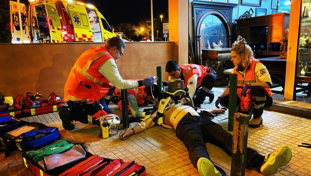 El SAMU 061 ha explicado que un taxista dio la voz de alarma sobre las 01.50 horas tras hallar a una persona inconsciente, tirada en el suelo, con numerosas heridas y rodeada de sangre.