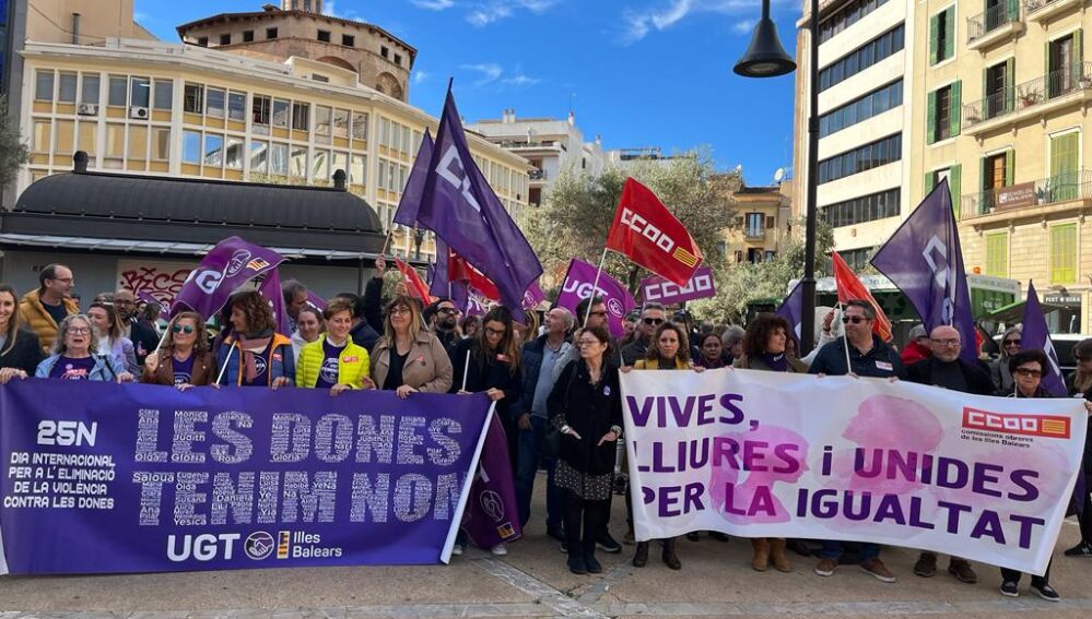 Más de un centenar de personas se han concentrado este viernes en la Plaza del Olivar de Palma con motivo del Día Internacional de Eliminación de la Violencia contra las Mujeres, que se conmemora este sábado. Las representantes de los sindicatos Comisiones Obreras y UGT han leído un manifiesto a través del cual han condenado el aumento de denuncias por violencia sexual en las islas, así como han reclamado a las instituciones de Baleares medidas efectivas para erradicar la violencia machista con políticas centradas en la prevención y la educación.