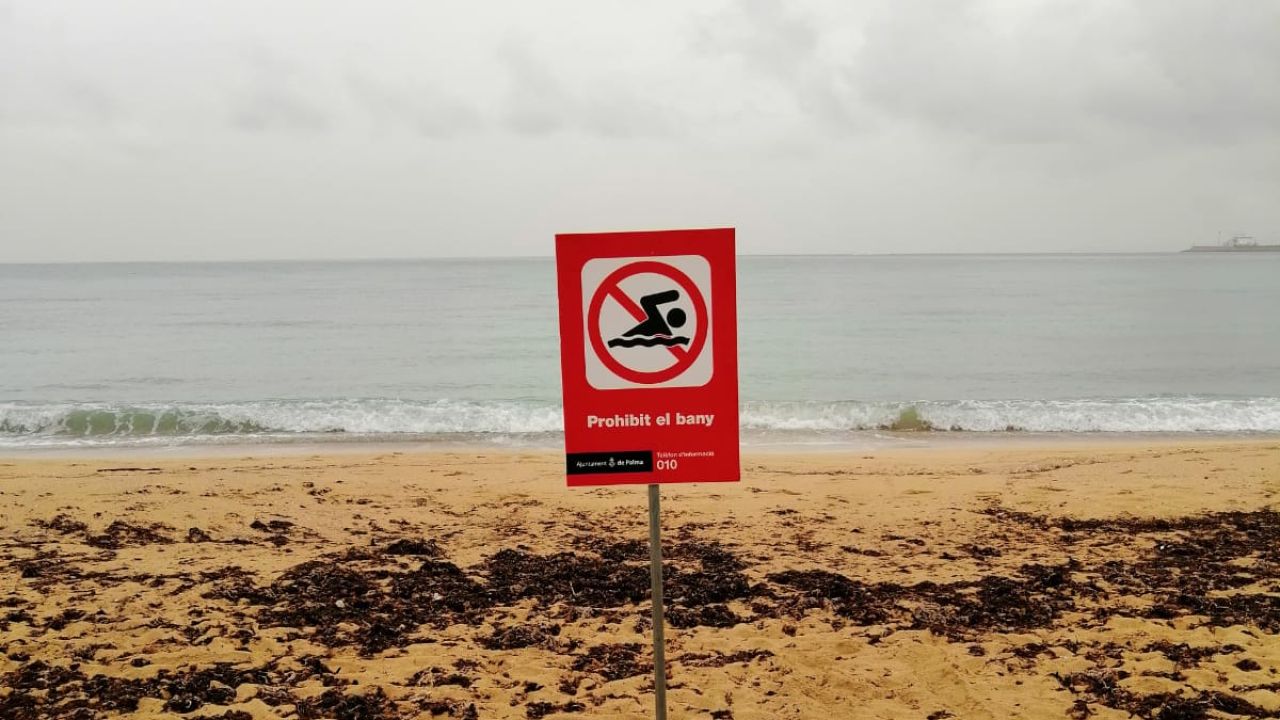 El Ayuntamiento de Palma ha informado este lunes del cierre de todas las playas del municipio y de la señalización con bandera roja por la tormenta.