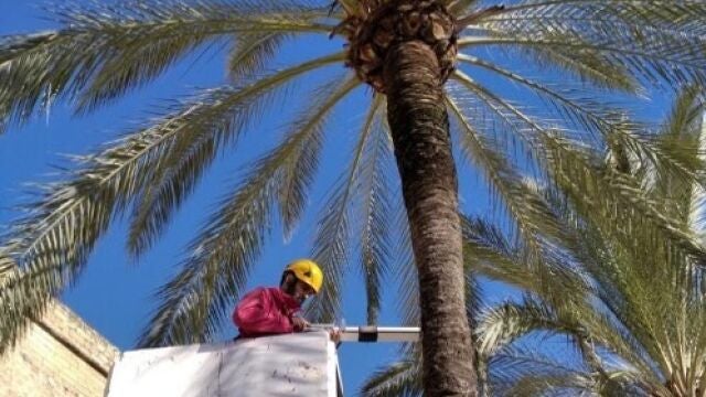 El servicio de Parques y Jardines del Ayuntamiento de Palma ha reforzado estos días la revisión de la población de palmeras situadas en las calles y zonas verdes, después de haber detectado un ejemplar afectado por la plaga del picudo rojo (Rhynchophorus ferrugineus), especie exótica invasora, en la calle Samil, en Playa de Palma.