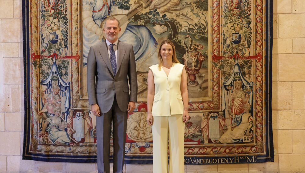 La presidenta del Govern, Marga Prohens, ha explicado este miércoles al Rey Felipe VI el proceso de transformación del modelo económico que ha iniciado el Govern, con el pacto social y político por la sostenibilidad, en una audiencia en la que han hablado de "todos los temas del panorama actual". Así se ha expresado la líder del Ejecutivo balear en declaraciones a los medios tras el encuentro con Felipe VI en el Palacio de la Almudaina, donde también ha agradecido al Rey su presencia a Mallorca "un año más".