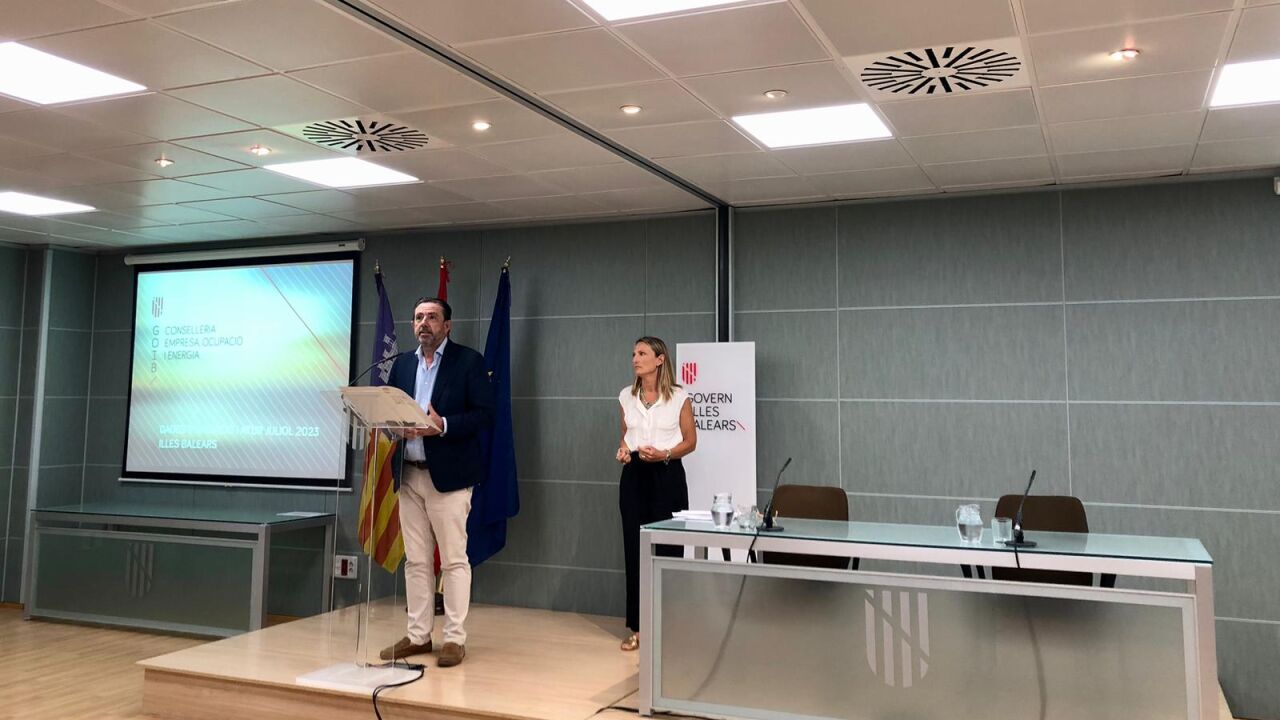 De su lado, la directora general de Trabajo y Salud Laboral, Catalina Teresa Cabrer, ha presentado los datos de afiliación y ha destacado que nunca había habido tanta gente trabajando en Baleares como este mes de julio.
