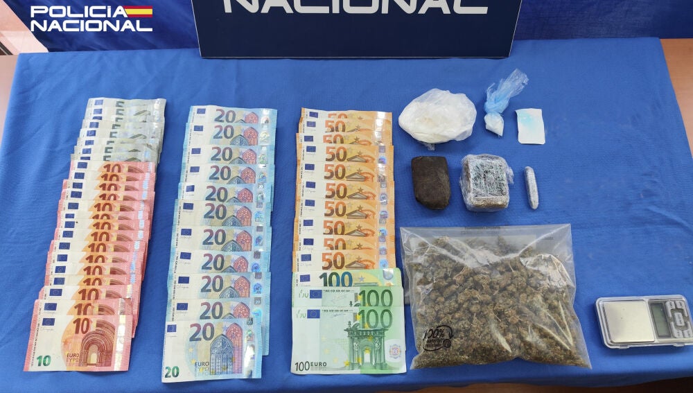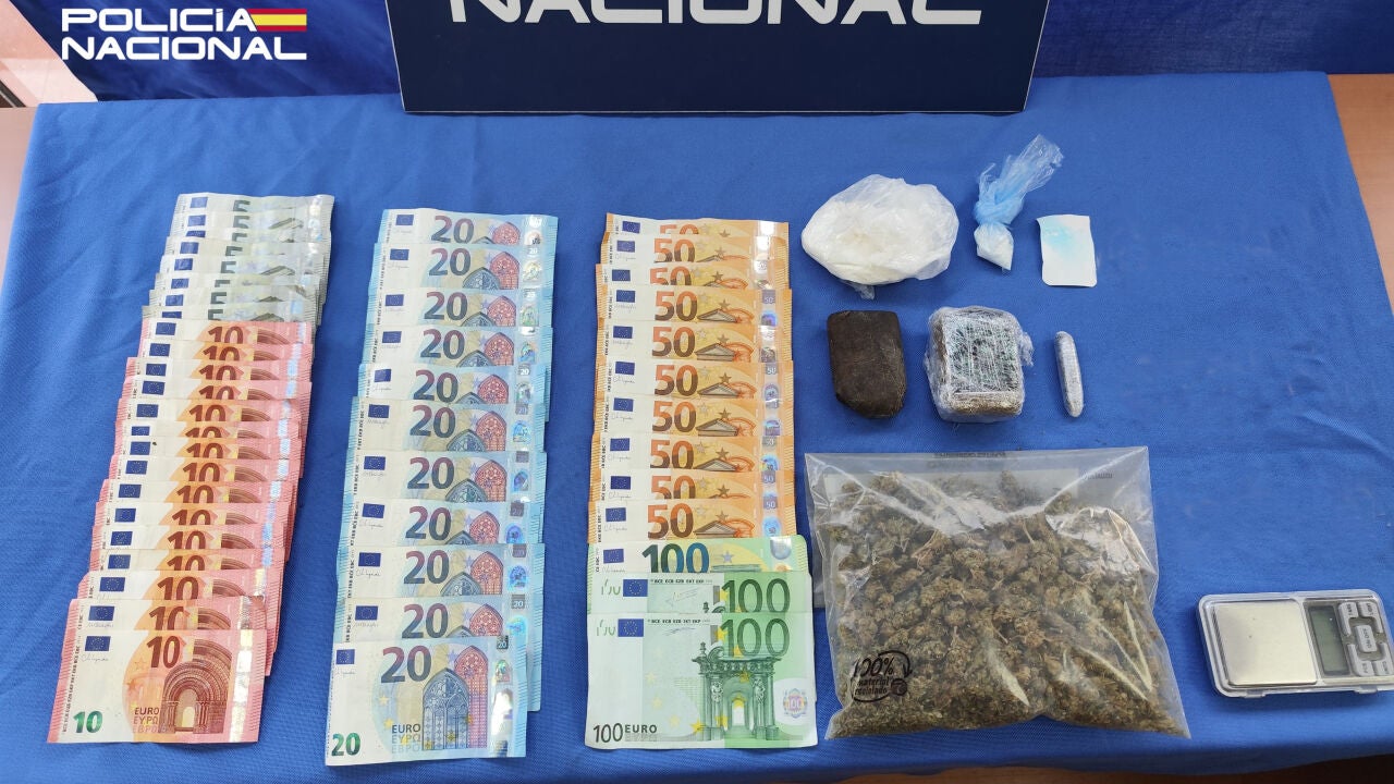 En total los agentes intervinieron cerca de 100 gramos de cocaína, 180 gramos de hachís y más de 60 gramos de cocaína. También 1.210 euros fraccionados en billetes pequeños y diversos útiles necesarios para la venta de droga, como cierres para monodosis.