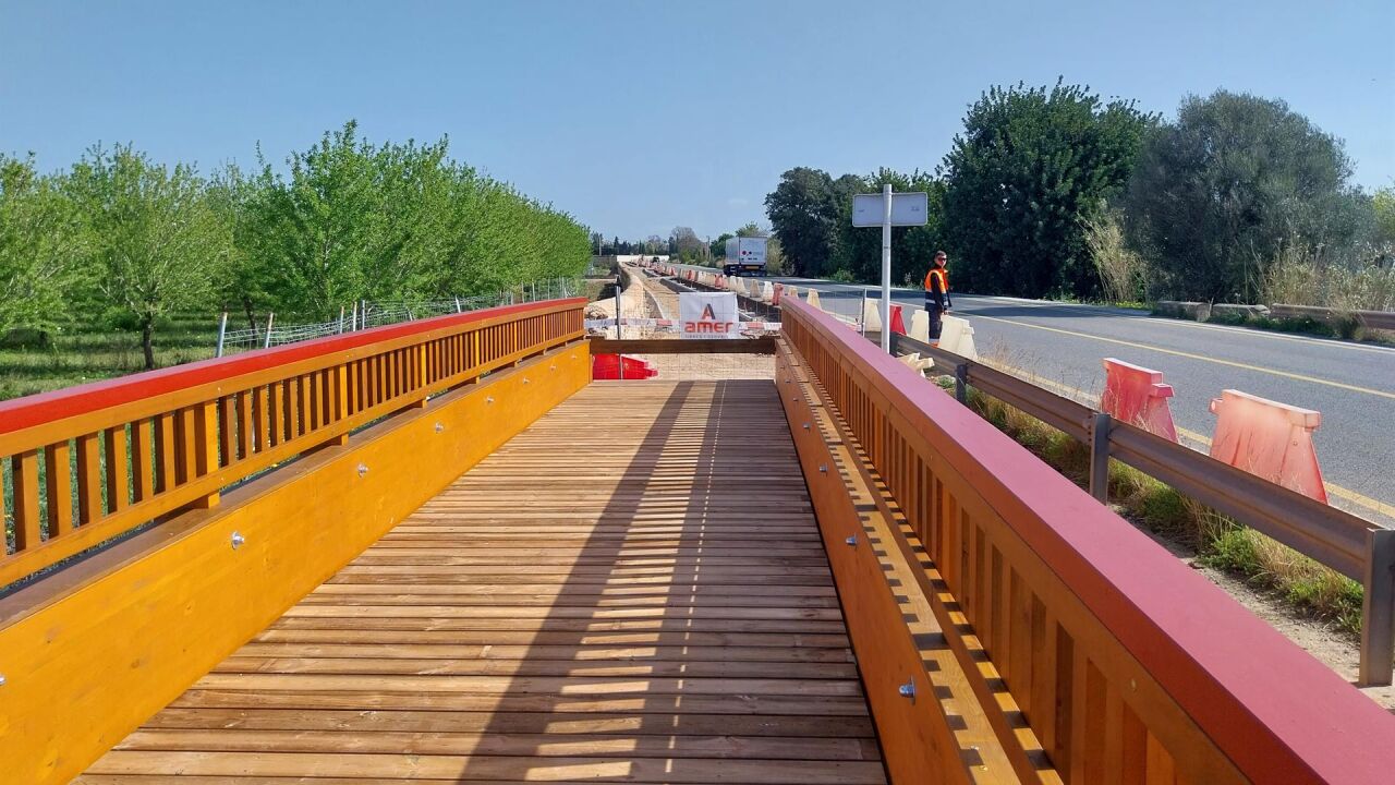 El Consell de Mallorca ha instalado una pasarela de madera sobre el torrente de Aumadrà para dar continuidad al eje cívico que unirá los municipios de Inca, Lloseta y Binissalem por la antigua carretera Ma-13A.