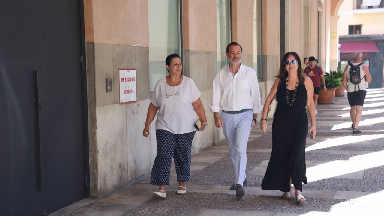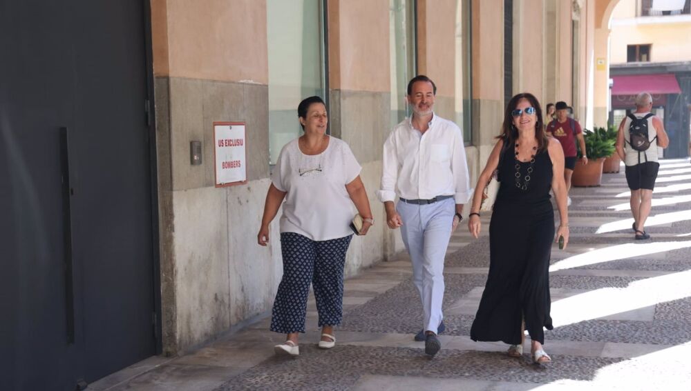 La diputada de Vox María José Verdú, el presidente del Parlament, Gabriel Le Senne, y la portavoz de Vox, Manuela Cañadas, en la calle Palau Reial | Isaac Buj - Europa Press