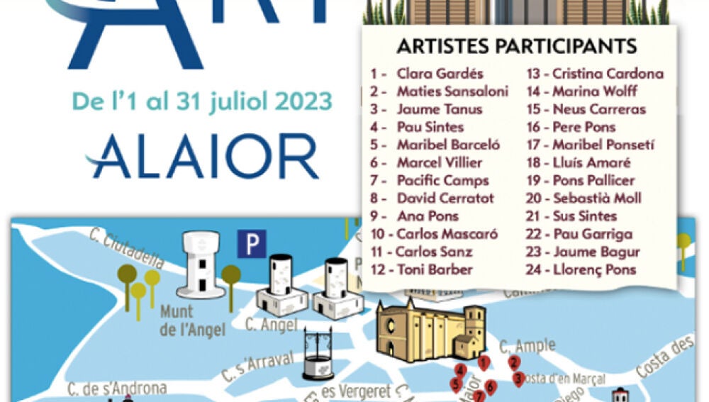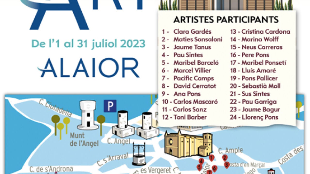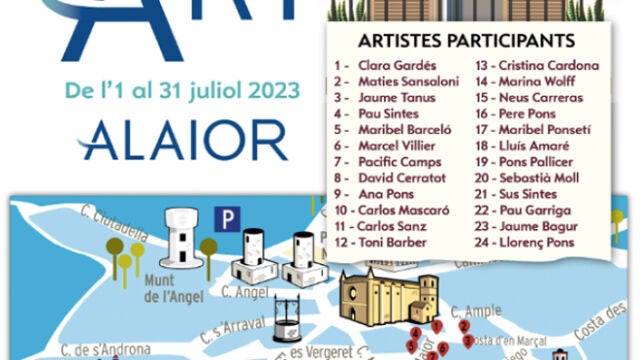 Un total de 24 artistas menorquines exponen sus obras en balcones de edificios del casco antiguo de Alaior en una iniciativa cultural organizada por el ayuntamiento y la galería "Pinzellades d'Art". La muestra, inaugurada el pasado sábado, incluye obras pictóricas de distintos estilos, que se exhiben en lonas de gran tamaño y permiten disfrutar de una combinación inédita entre arte y arquitectura.