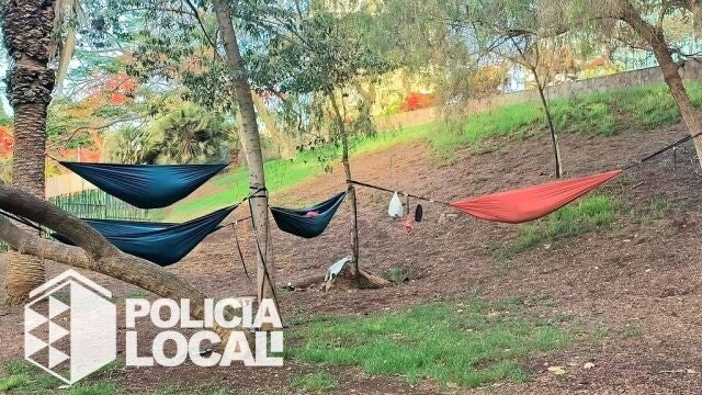 Nos situamos en el céntrico Parque de La Granja de la capital tinerfeña, uno de los más transitados. La Policía Local sorprendió a varios turistas de naciolidad suiza, cuatro concretamente que por lo que sea pensaron que unos terraplenes en un parque urbano eran un lugar en donde se permite pernoctar e incluso montar tiendas de campaña o hamacas.