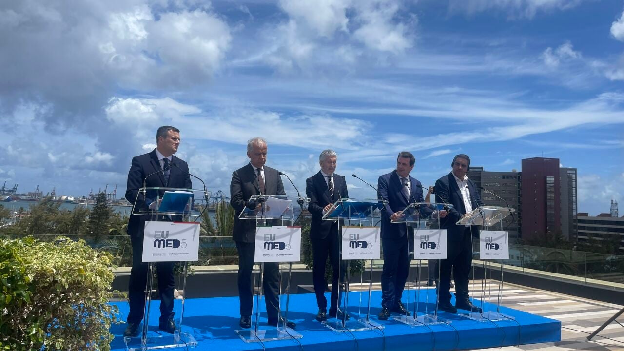 Marlaska, junto al resto del MED5, quiso expresar que "en ese compromiso decidido con Canarias está toda España a nuestro lado y también el conjunto de los países mediterráneos y toda la Unión Europea". Aquí, recordó que este grupo nació para llevar a Europa "una sola voz" sobre la perspectiva de política migratoria de cinco países de primera entrada con intereses y con preocupaciones comunes.