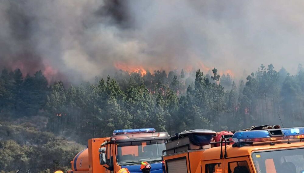 El fuego se originó a primera hora de la tarde de este martes, 25 de julio, y alcanza unas 285 hectáreas de arbolado pinar de pino canario y retamar