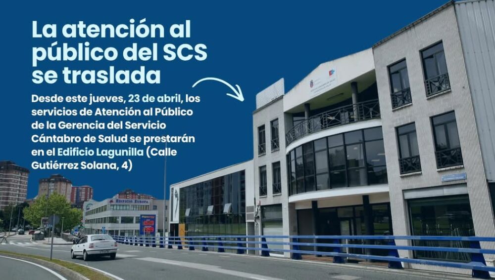 Los servicios de atención al público de la Gerencia del Servicio Cántabro de Salud (SCS) se trasladan desde este jueves al Edificio Lagunilla, en la calle Gutiérrez Solana número 4 de Santander, debido a las obras de demolición de la Residencia Cantabria.
